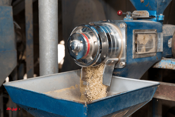 جداسازی: دانهها از غلتکهایی با سرعتهای متفاوت عبور میکنند تا بخش سفید داخلی از پوسته (سبوس) تفکیک شود.