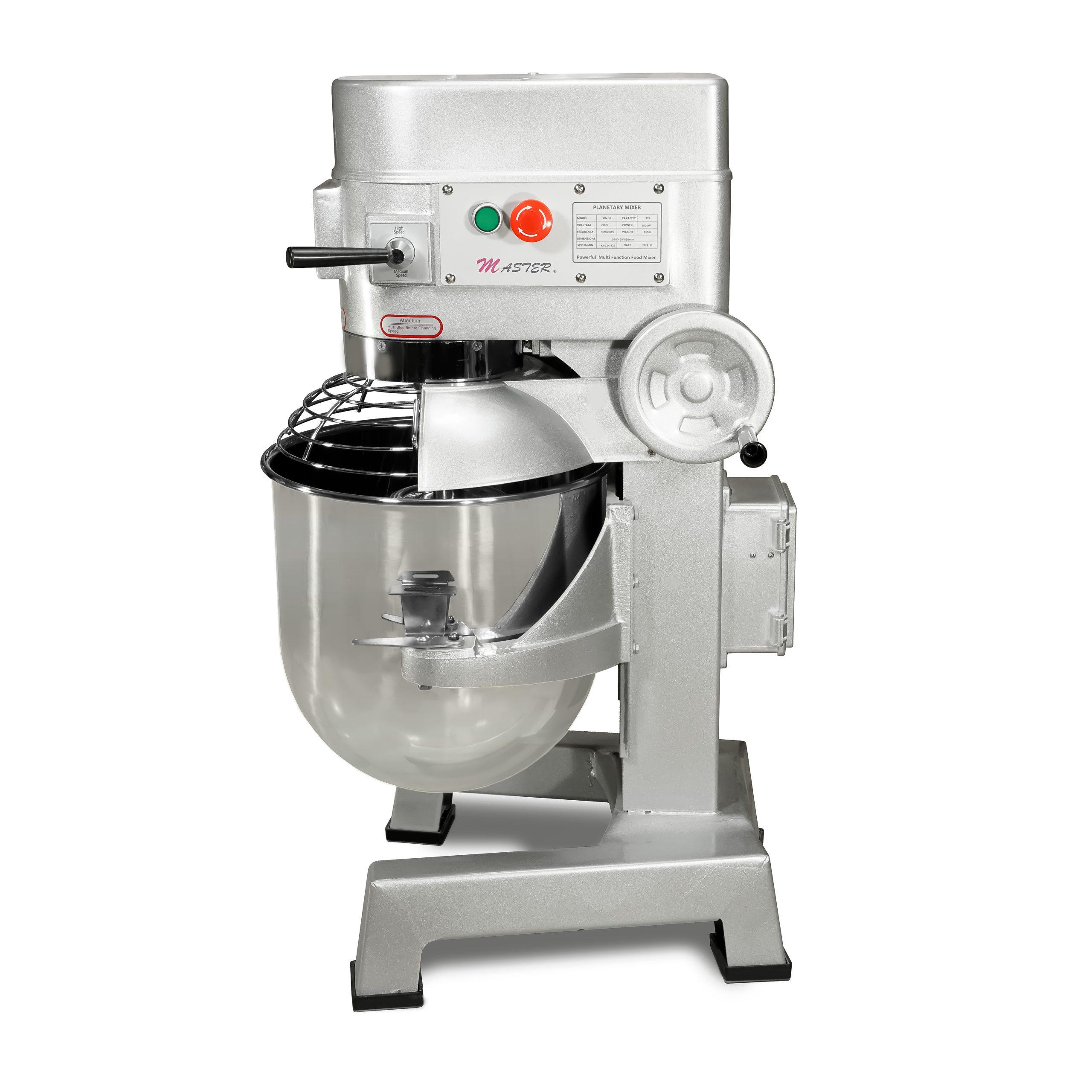 میکسر سه کاره قنادی 30 لیتری مستر مدل Master- BM30 ، استیل به کار رفته این محصول نظافت آسان کمترین میزان واکنش پذیری را با مواد غذایی دارد . این میکسر کیک دارای موتور قدرتمند 1.5 اسب بخار توانایی میکس کردن انواع خمیر های سف از جمله خمیر باقلوا و … را دارد . این میکسر 3 فاز بوده و دارای 3 عدد پاروی مجزا و قابل تعویض که هر یک کاربرد خاص خود را دارند مورد استفاده قرار میگیرید . از پارو های این میکسر برای تولید کف تخم مرغ ، تولید خامه ، و میکسر انواع خمیر ها استفاده می شود . جنس پارو این محصول از استیل ۳۰۴ می باشد و همچنین این میکسر دارای ۳ عدد پارو می باشد . این همزن حرفه ای می تواند به شما در پخت کیک کمک کند و کار شما را در هنگام پخت کیک راحت تر بکند .